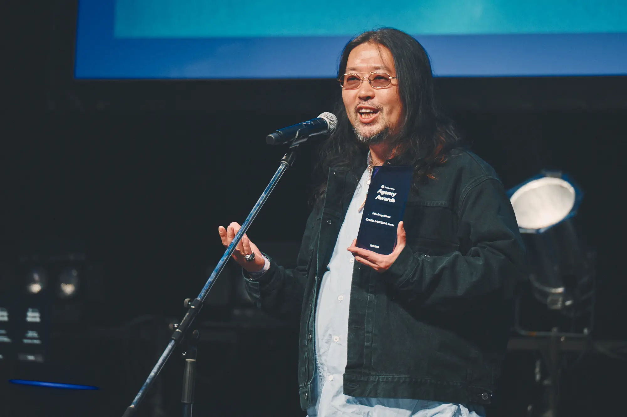 2年前に出演させていただいた『PIVOT』の「社長改造」というドキュメンタリー番組の中で「これからは音声が来ると思う」という話をして、それから2年間、音声コンテンツと真剣に向き合ってきました。そして今回、リクルート様やロッテ様といったチャレンジ精神溢れるクライアントの皆様にお付き合いいただいたおかげで、このような賞をいただくことができました。ヴィジュアル表現として動画でなければ出来ないことは多々あります。しかしそれと同様に、音声だからこそできる深いコミュニケーション、心に残る新しい体験創出は今、世界で大きなムーブメントになりつつあります。だからこそ僕は、音声広告としての大きな可能性を信じています。