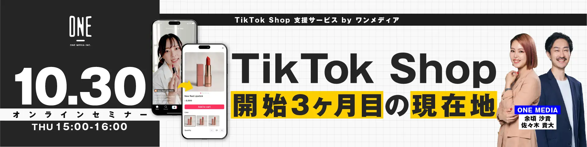 10月30日(木)13:00 ※同業他社様(広告代理業、マーケティング支援をされている企業様)のご参加はご遠慮いただいております。 |