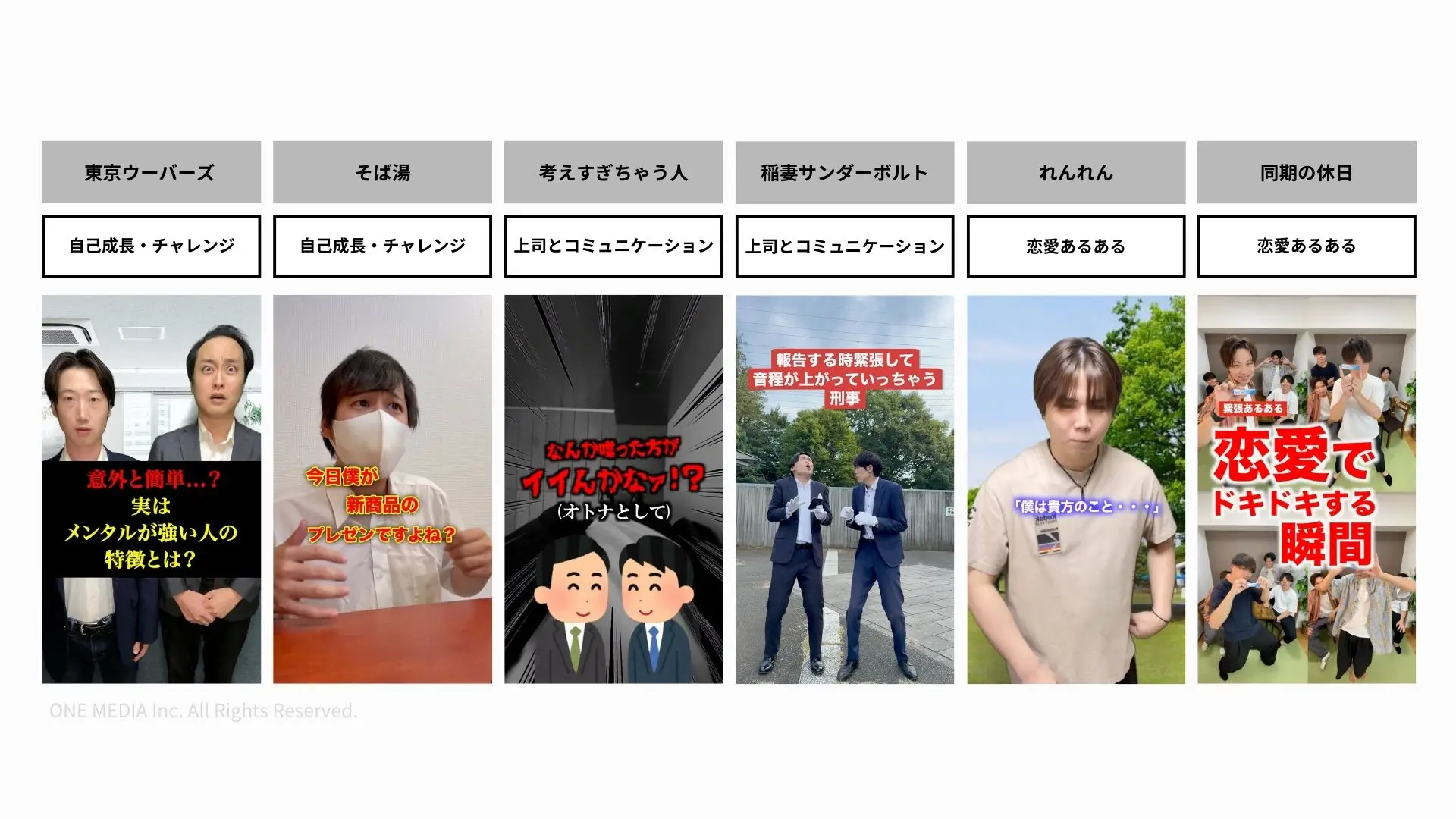 ショート動画(TikTok/YouTube Shorts)では、生活者との距離が近い人気クリエイター6組をキャスティング。「上司とのコミュニケーション」や「プレゼン前の緊張」といった、社会人であれば誰もが経験するであろう不安をテーマに、ユーモアを交えたストーリーを展開。商品紹介を前面に出すのではなく、不安を感じる場面を共有する中で、気分リフレッシュアイテムとしてのACUOを自然に描く構成としました。