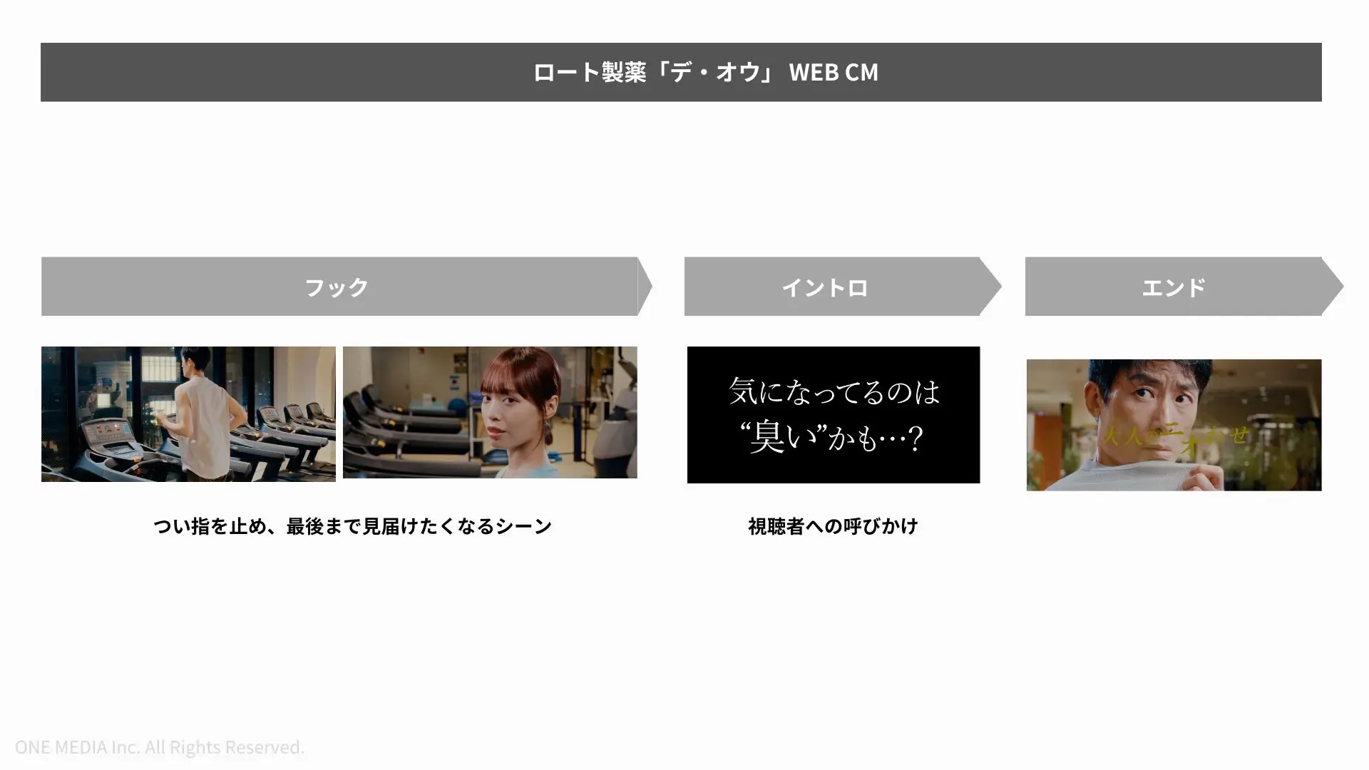 体臭や加齢臭は、自身では気づきにくく指摘もされにくいテーマであることから、「実は加齢臭が原因だった」というギャップを軸に、視聴者自身が過去の行動やシーンを振り返る構成で動画を制作。「勘違いへの気づき」を描くことで、防衛的な反応を生まずに体臭を想起させ、「もしかすると自分も対象かもしれない」という認識転換を促しています。